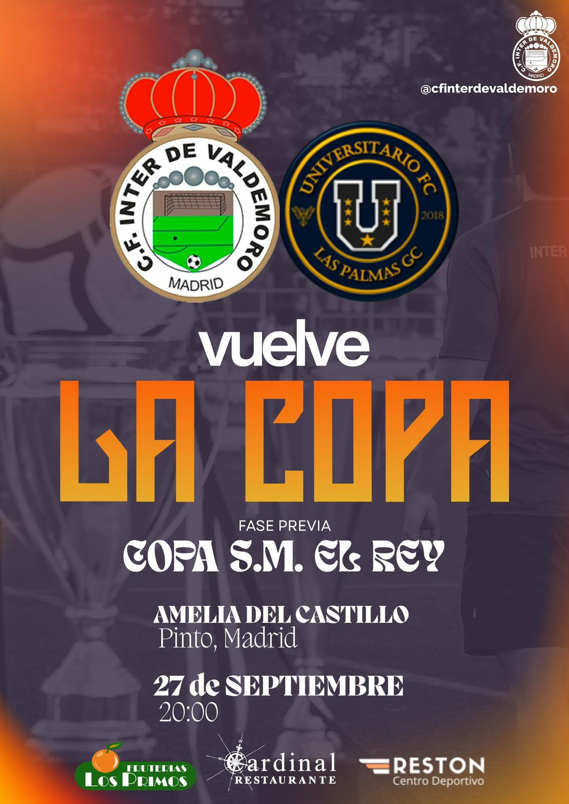 Restón Cinema acogerá el sábado, 4 de octubre a las 21:00h la retransmisión en directo del encuentro de vuelta de la fase previa de Copa del Rey en la que el Inter de Valdemoro se enfrentará al Universitario FC de Las Palmas ran Canarias.